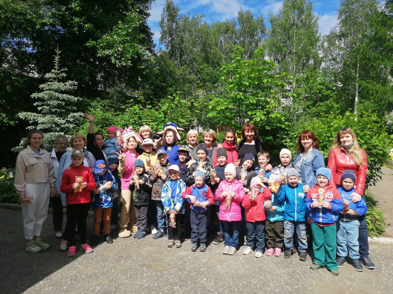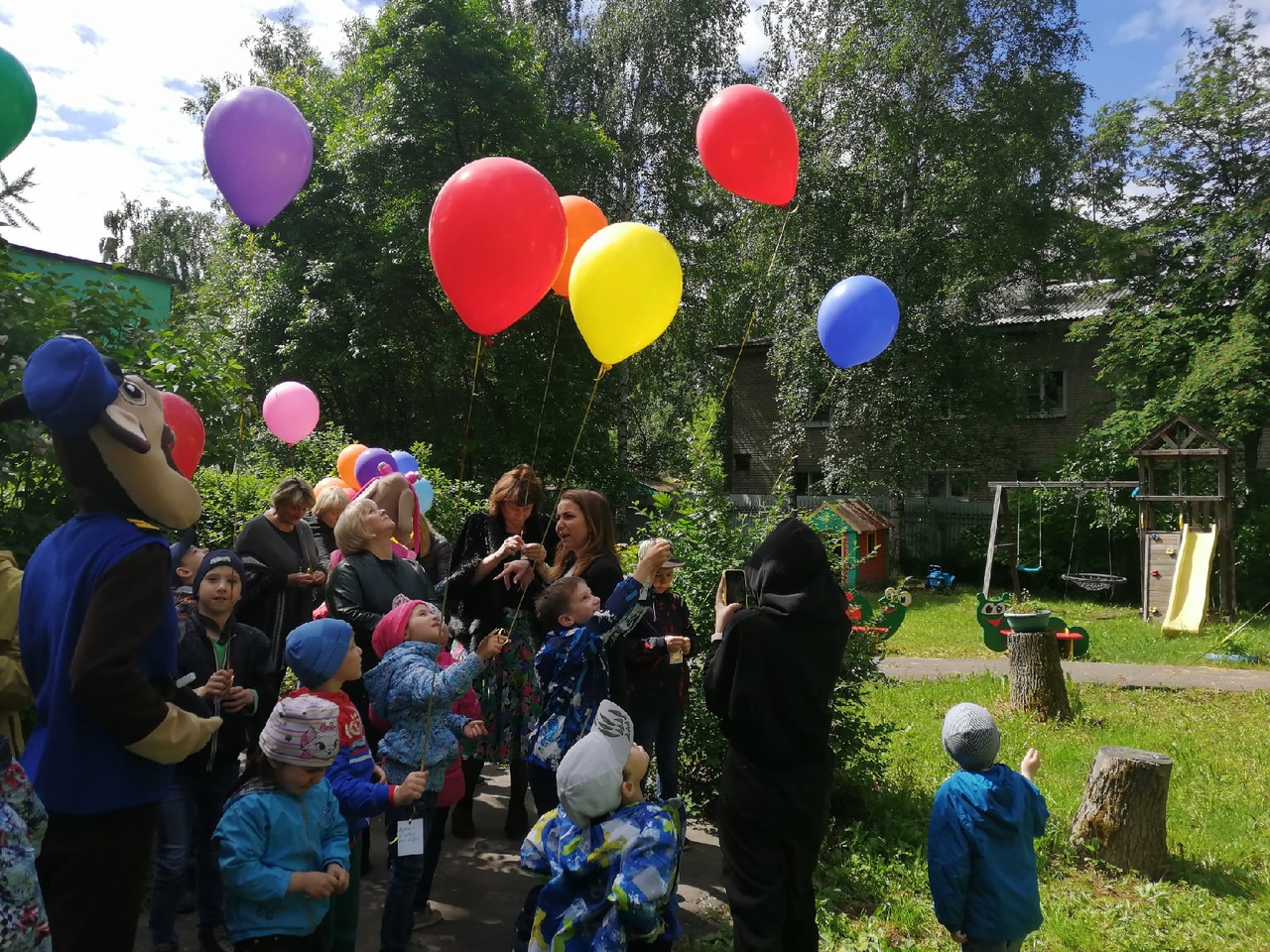В этот день у нас прошёл праздник. В гости к детям пришли герои мультфильма "Щенячий патруль". Ребята очень весело провели с ними время. В конце праздника каждый из воспитанников написал своё заветное желание, привязал его к воздушному шарику и выпустил в небо. Очень надеемся, что желание каждого ребёнка исполнится.