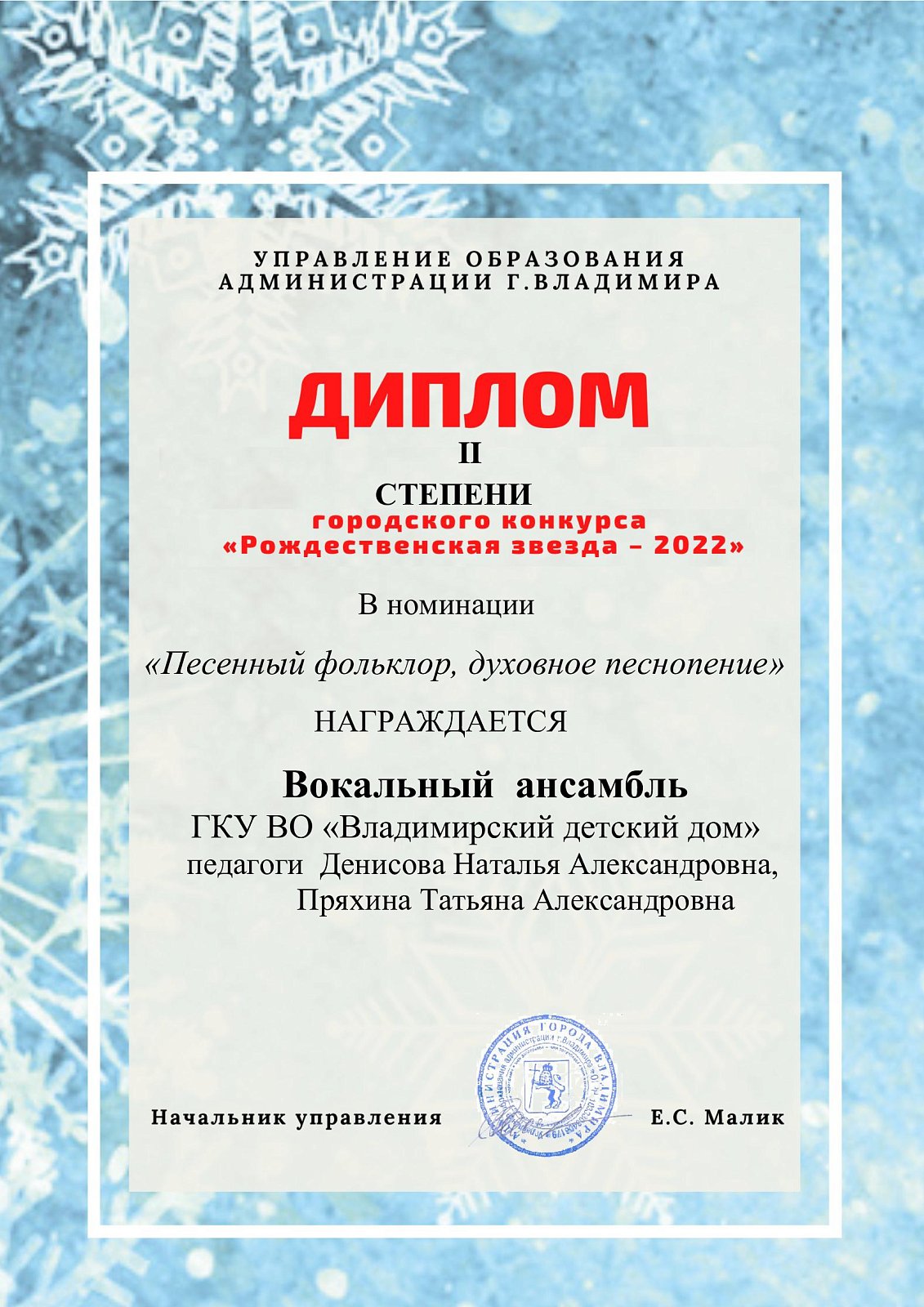 Поздравляем нашу вокальную группу, занявшую 2-ое место и получившую диплом II степени в номинации "Духовные песнопения" ежегодного городского конкурса "Рождественская звезда". Ребята показали себя настоящими артистами, им подпевал и аплодировал весь зал. В подарок каждый маленький артист получил красочную книгу о Рождестве. Желаем вам, ребята, дальнейших творческих успехов!