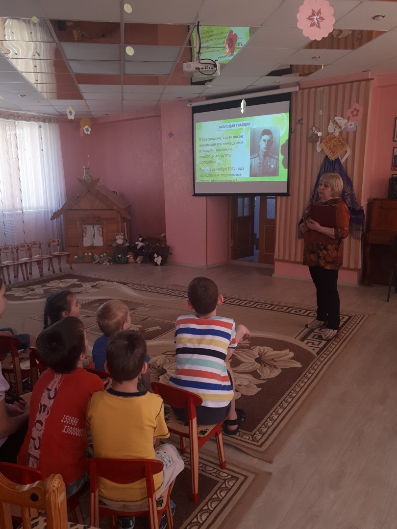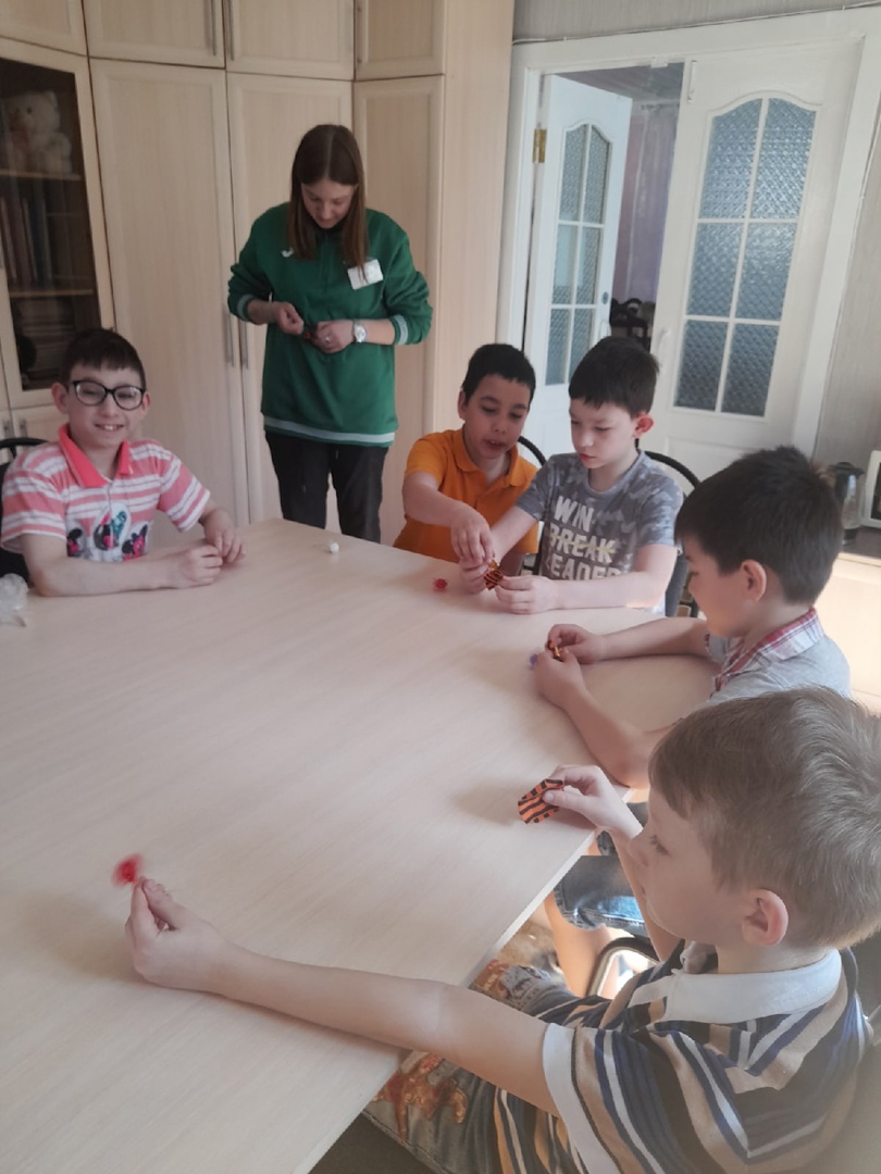 В целях сохранения исторической преемственности поколений, воспитания бережного отношения к историческому прошлому и настоящему России, формирования духовно-нравственных и гражданско-патриотических качеств подрастающего поколения в детском доме были организованы и проведены мероприятия, посвященные этой знаменательной дате. На библиотечных занятиях на темы «Молодая гвардия» и «Пионеры-герои» наши ребята посмотрели советский двухсерийный художественный фильм 1948 года режиссёра Сергея Герасимова «Молодая гвардия». Так же прослушали серию рассказов о юных героях, совершивших великие подвиги во время Великой Отечественной Войны, таких как Валя Котик, Витя Коробков, Марат Казей, Зина Портнова. Были организованы выставки рисунков и поделок посвященные 9 мая, воспитанники приняли участие во Всероссийском конкурсе «Рисуем Победу». Студенты Владимирского аграрного колледжа провели с нашими воспитанниками мастер-класс по изготовлению георгиевской ленты. Ребята посетили площадь Победы, возложили цветы к вечному огню и побывали в Патриотическом сквере. Торжественно и очень трогательно прошло познавательно-патриотический досуг, посвящённый 77-годовщине Победы в Великой Отечественной войне. Утром 9 мая все вместе смотрели военный парад, а вечером праздничный салют.
