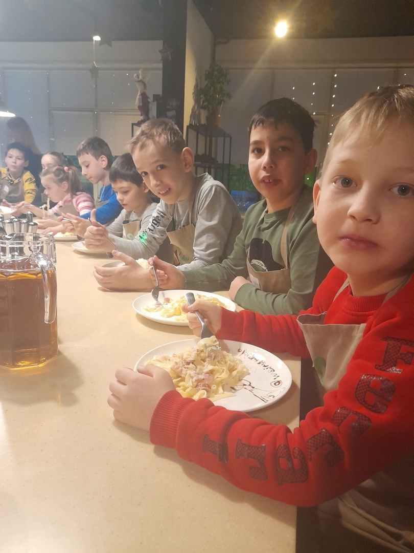 Сегодня наши ребята побывали в Кулинарной студии "ROULET". Мастер-класс проходил под контролем опытного шеф-повара Дмитрия Орловского, где он показал этапы приготовления спагетти.
