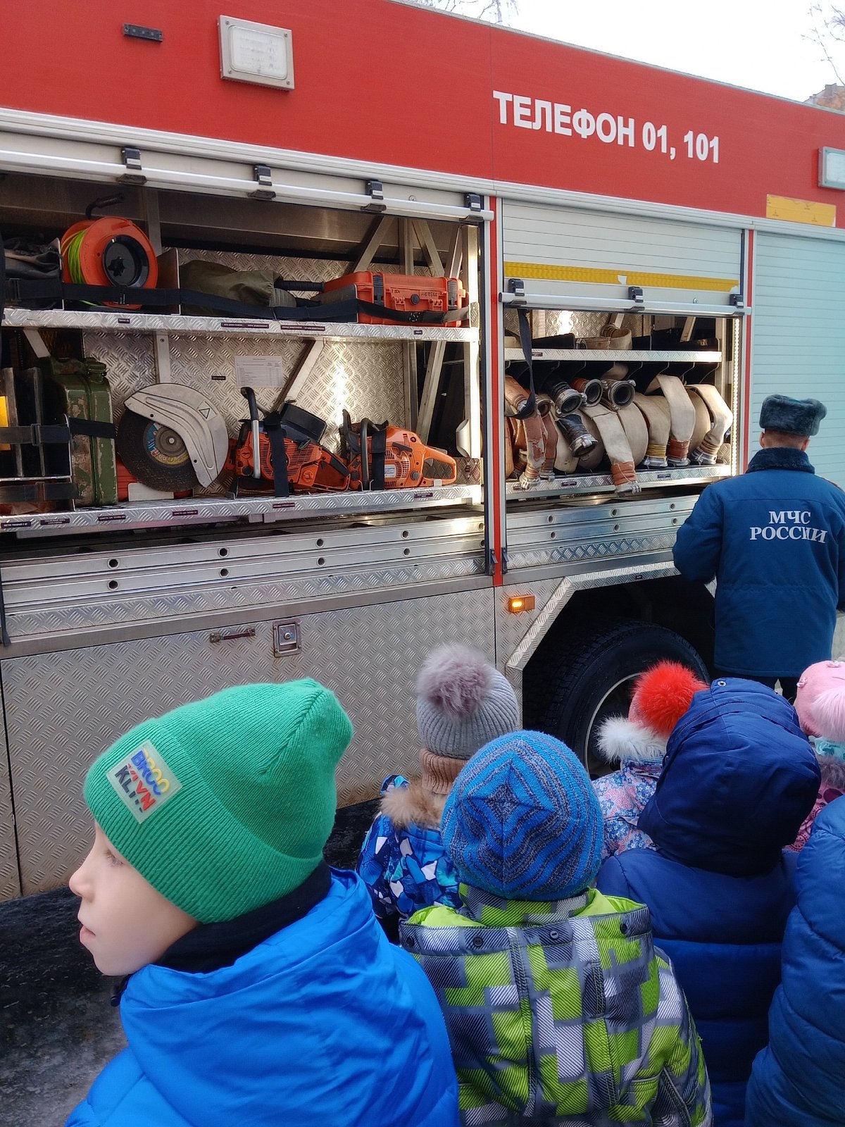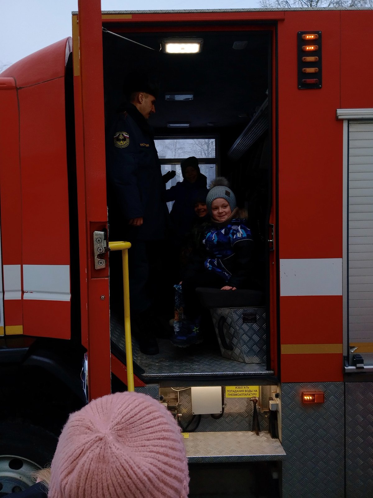 В завершении встречи дети смогли изучить устройство пожарной машины и даже посидеть внутри.