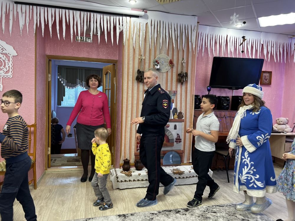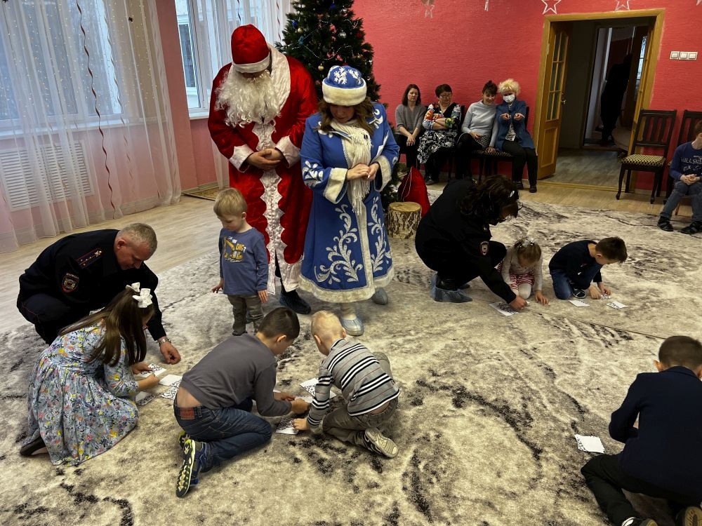 Ребятам сотрудники полиции устроили настоящее представление с конкурсами, загадками, хороводами, и конечно же новогодними подарками..