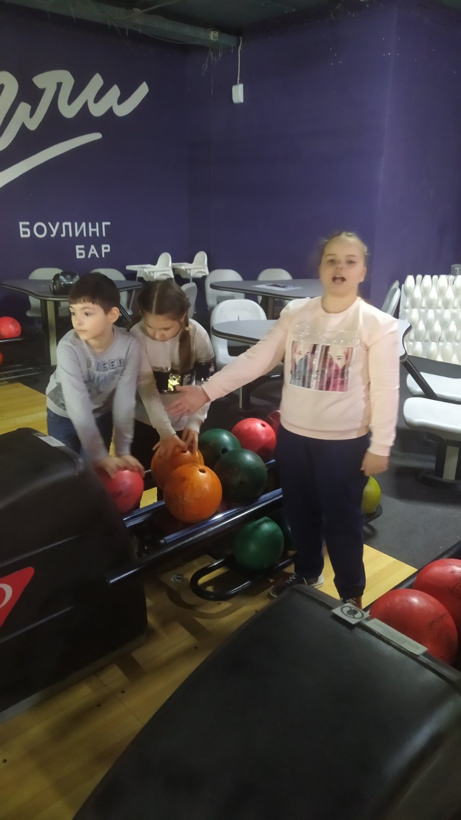 Сегодня в первый день каникул наши ребята посетили боулинг в Развлекательном Центре «Самохвал». Ребята очень весело провели время. Играли, стараясь набрать как можно больше очков. Были даже те, кто смог выбить страйк. Каждый мог подобрать себе шар по весу, однако это удавалось не сразу. Были те кто устал….Но они не стали скучать и перешли на детские автоматы….