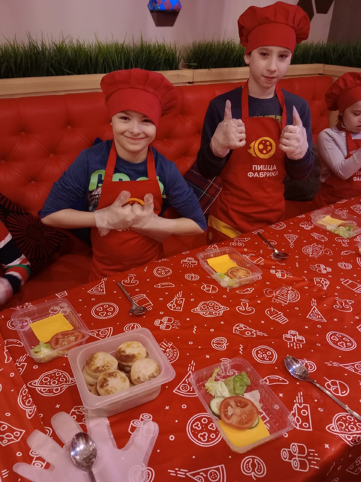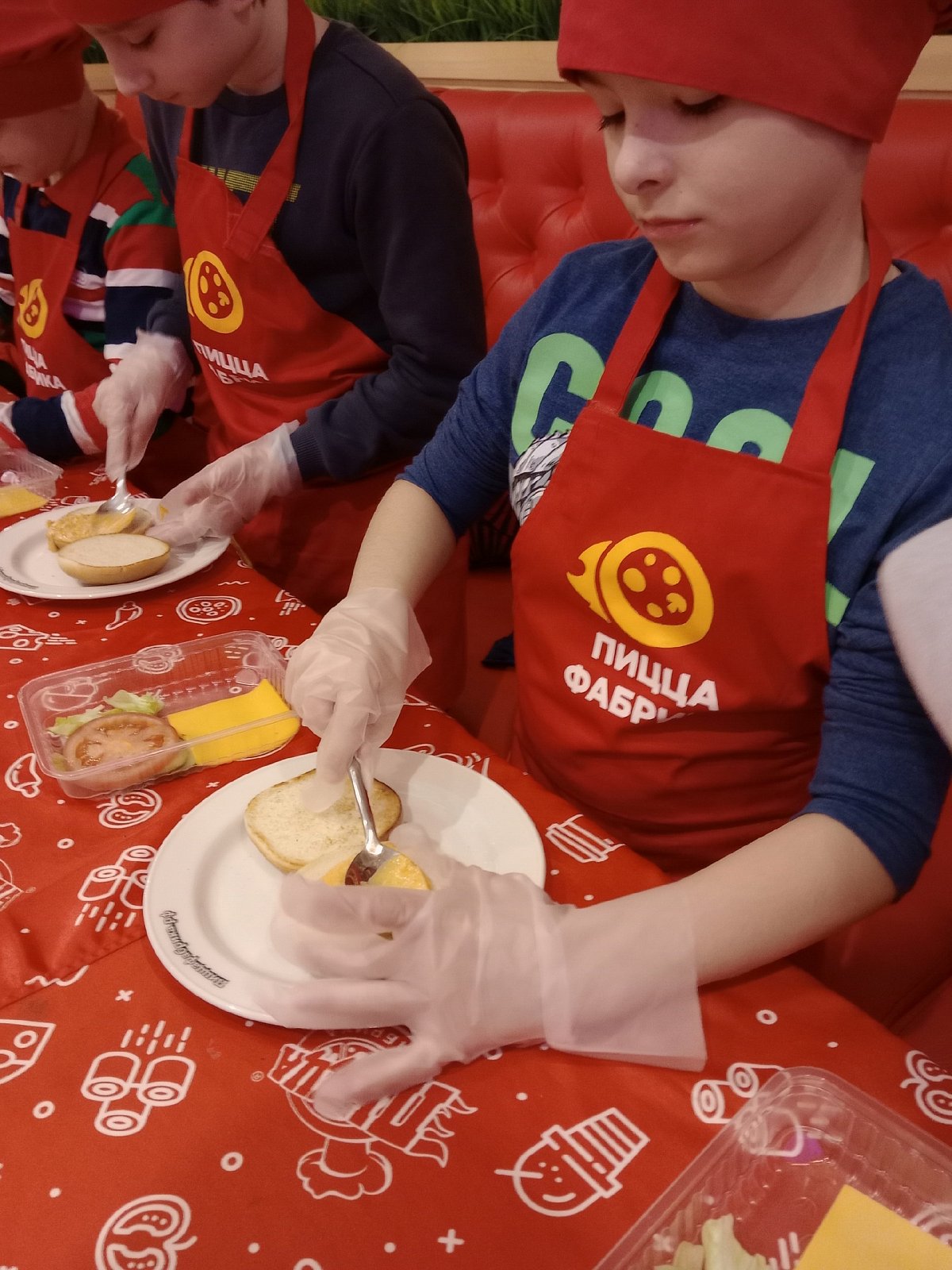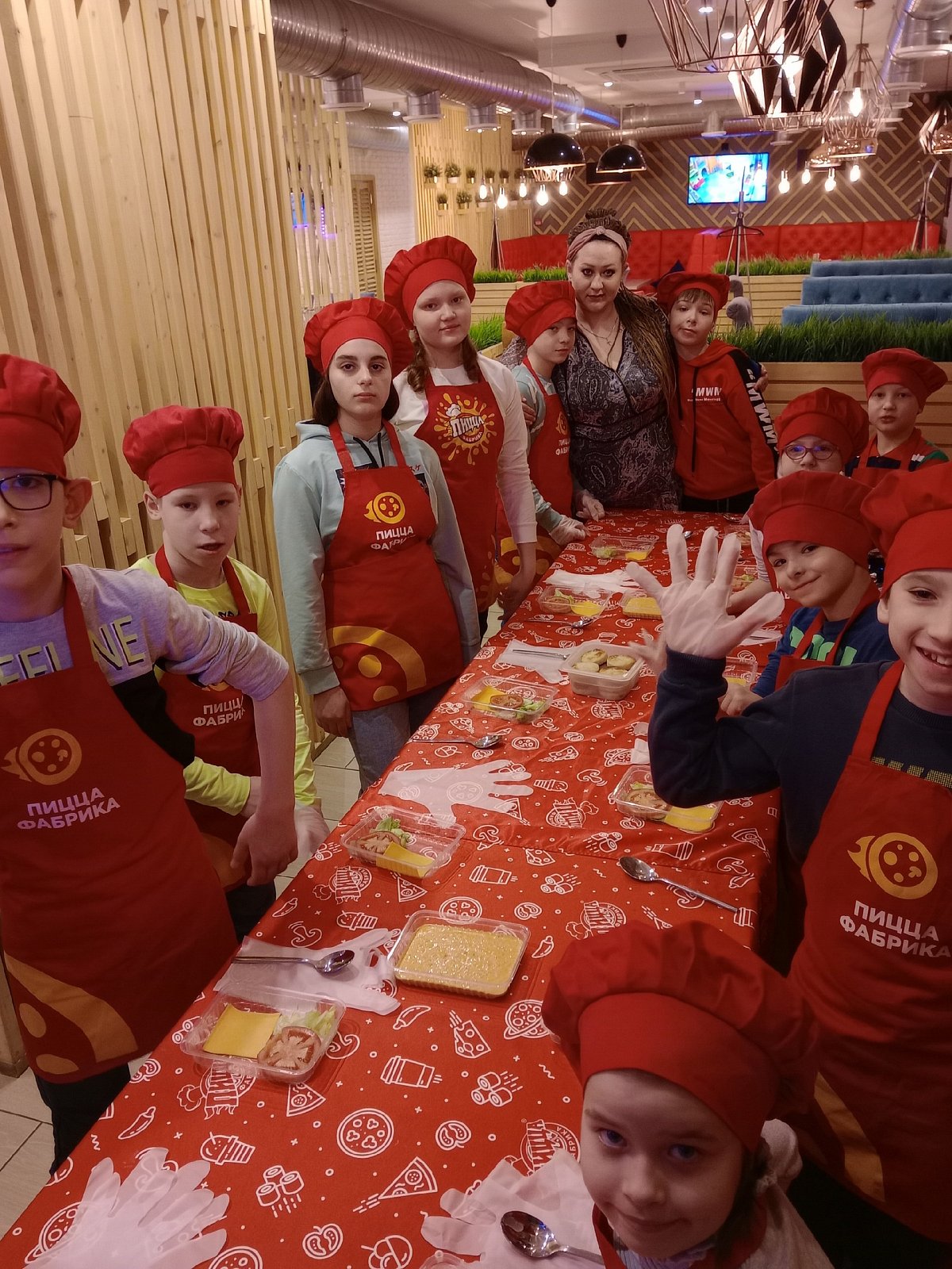 Сегодня мы побывали на мастер – классе в пиццерии «ПИЦЦАФАБРИКА» В самом начале с ребятами была проведена беседа по правилам безопасности работы на кухне, были озвучены правила гигиены (как правильно одеть спецодежду, помыть руки и т. д.) .