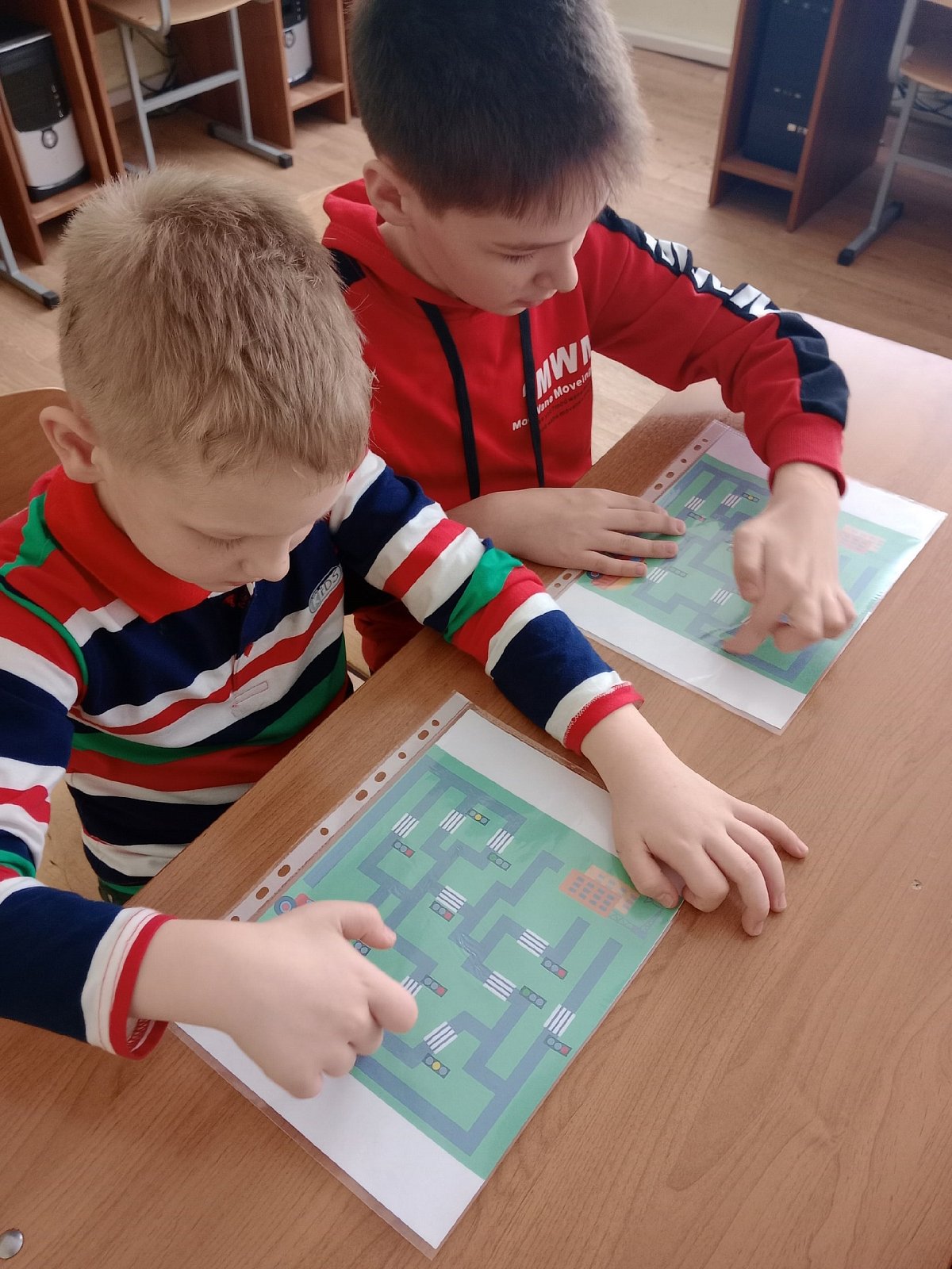 Ребята побывали в учебных кабинетах комбината. Каждый «примерил» на себе профессию «Водителя» и "Младшей медицинской сестры ". Ребят познакомили с различными дорожными знаками, правилами на дорогах, самостоятельно посмотрели оборудование, которое необходимо в работе медсестры.