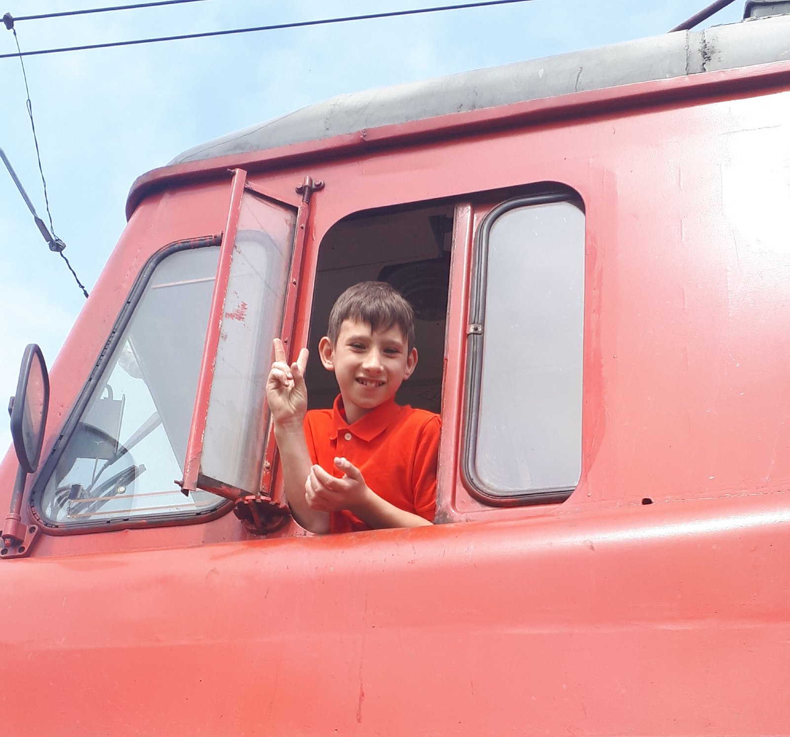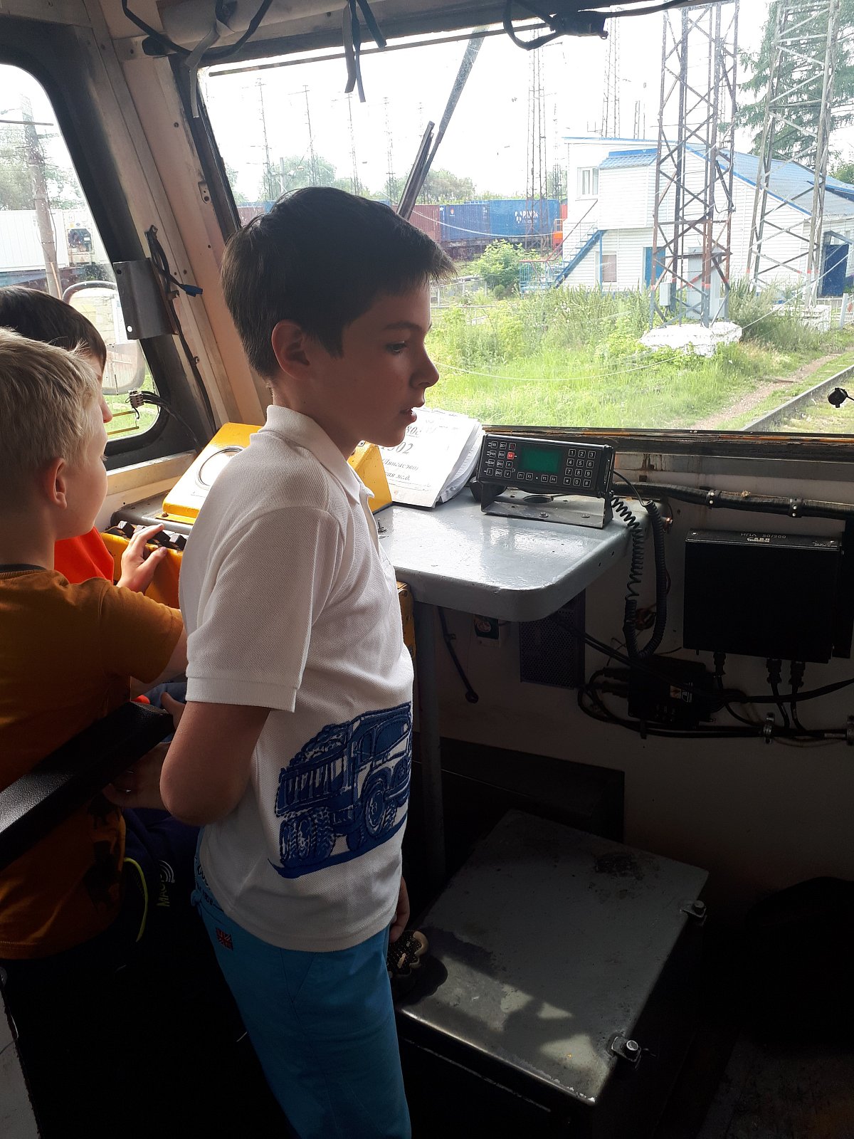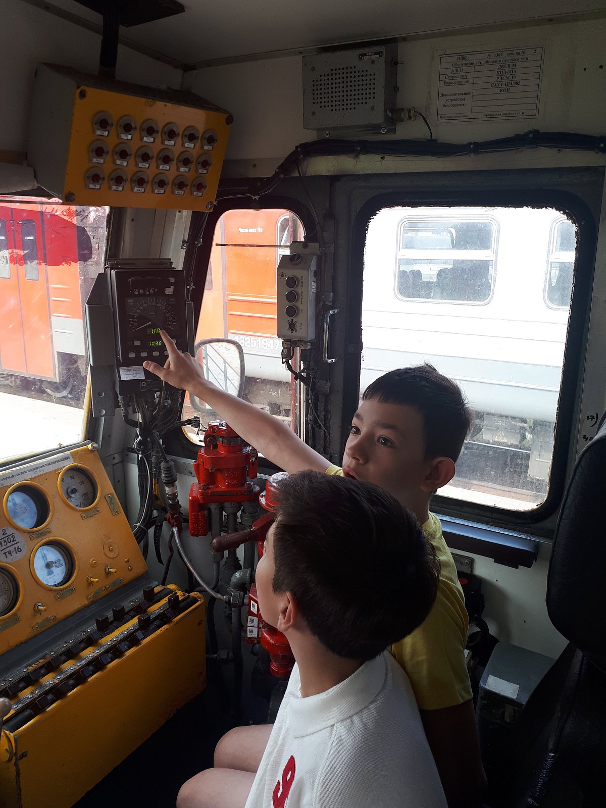 Ну а самым запоминающем для ребят стало, побывать в кабине электровоза и проехать в нем…. Каждый смог почувствовать в роли машиниста: посидеть на настоящем стуле машиниста, нажать на кнопки, дать настоящий гудок электровоза. Было здорово!