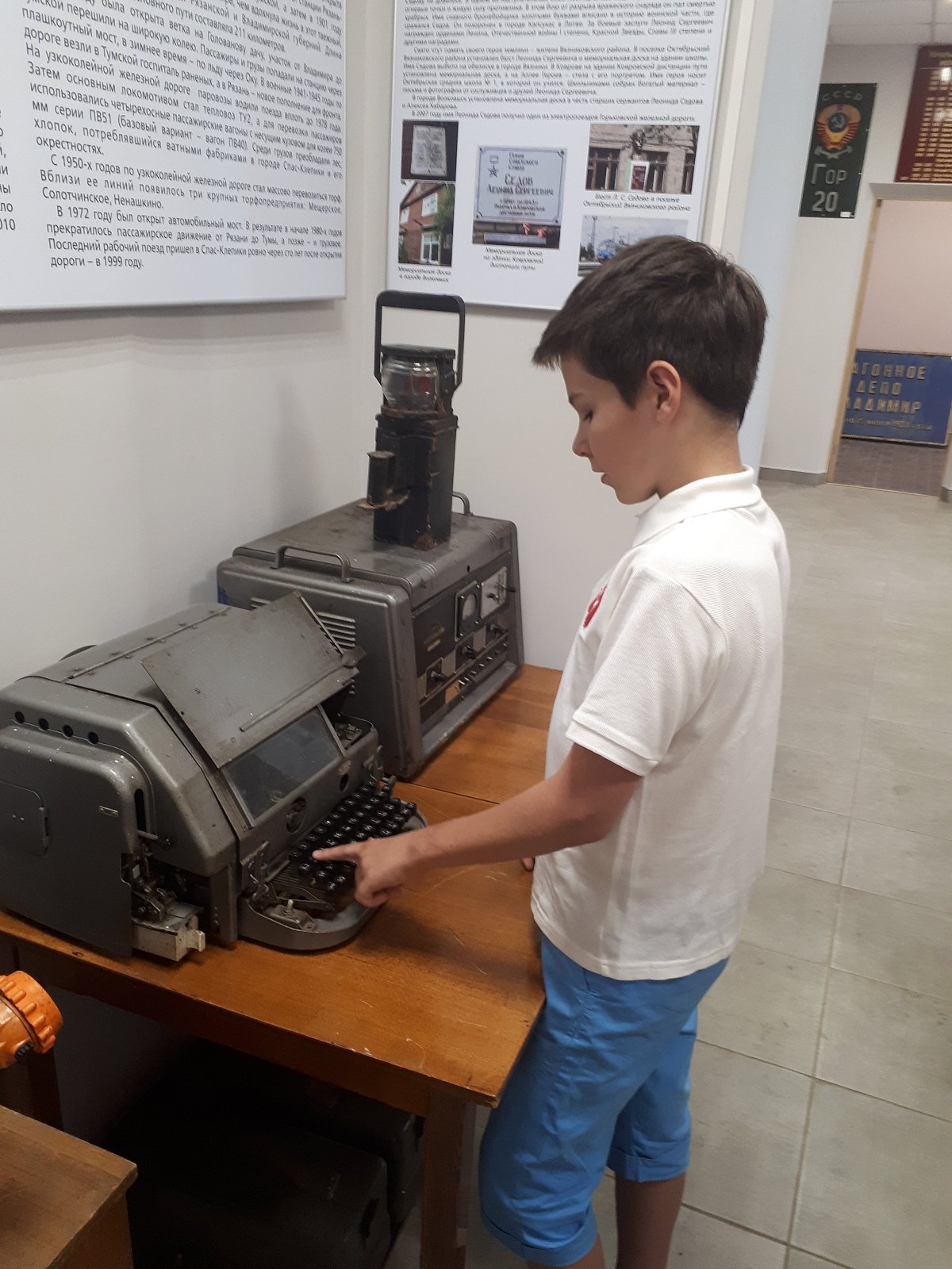 После экскурсовод провел интересную экскурсию в музей боевой и трудовой славы локомотивного депо. Ребята с интересом рассматривали экспонаты, железнодорожную форму машинистов разного времени, старинные бытовые вещи.