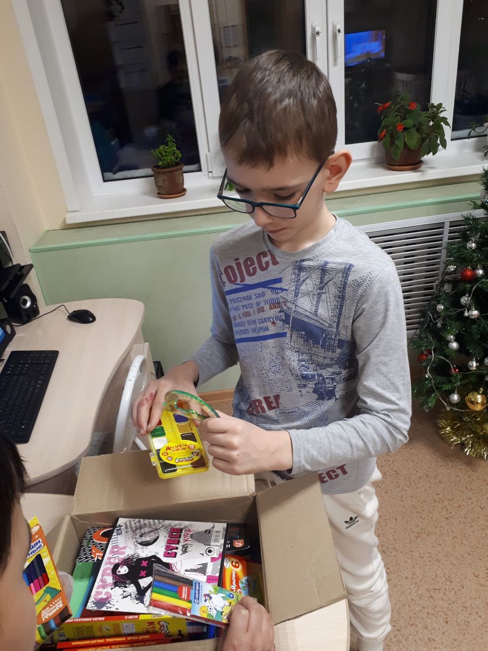 Сегодня к нам приходил волонтерский отряд «Есть дело». Совместными усилиями ребят школы, их родителей и учителей волонтеры собрали и упаковали канцелярские товары с добрыми пожеланиями и вручили ребятам нашего дома.