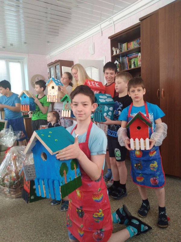 Мастер-класс по раскрашиванию скворечников в детском доме.