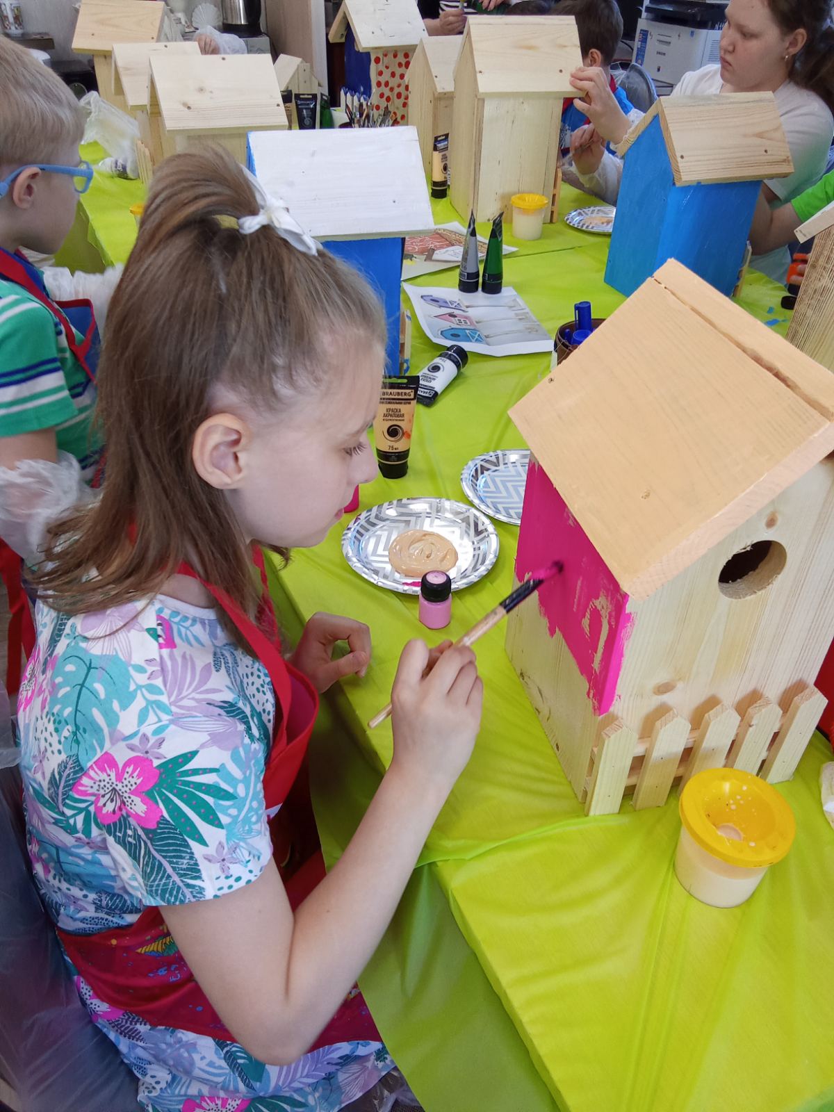 Под руководством наших гостей, дети с огромным удовольствием расписывали скворечники. Каждый из них придумывал свой уникальный дизайн, вдохновленный природой, птицами или своими фантазиями.