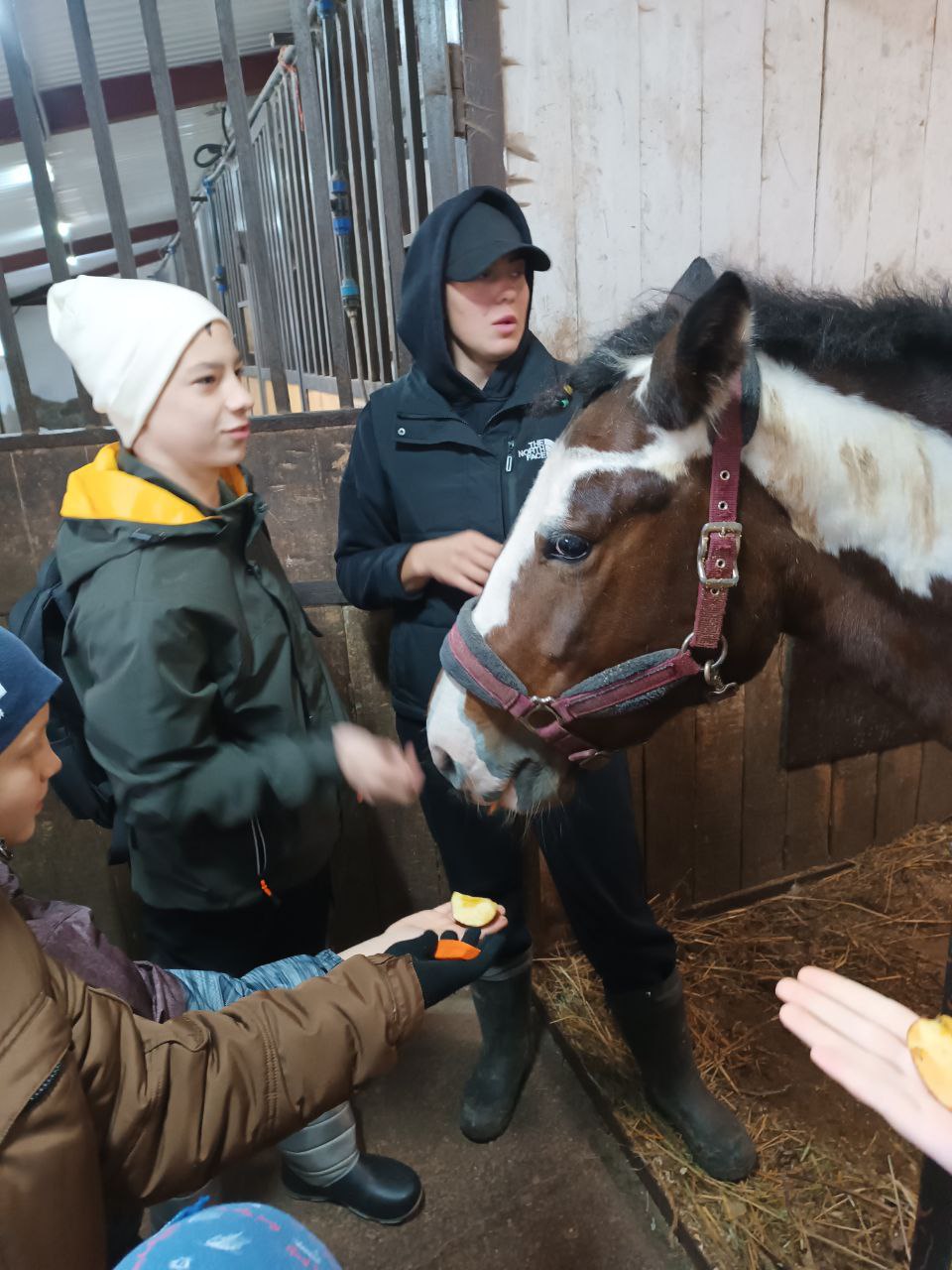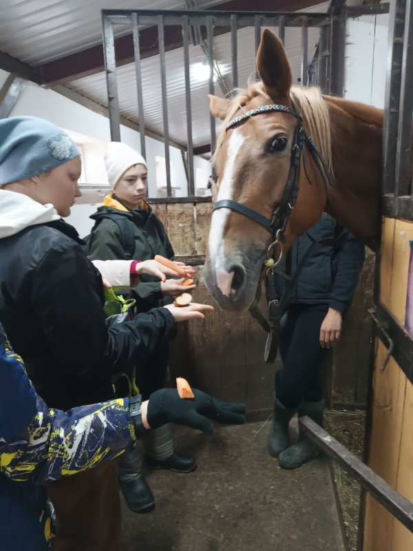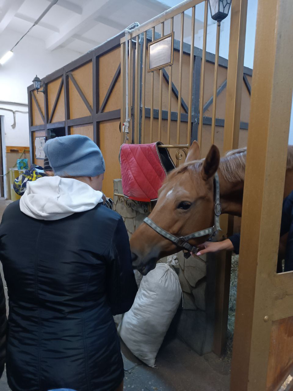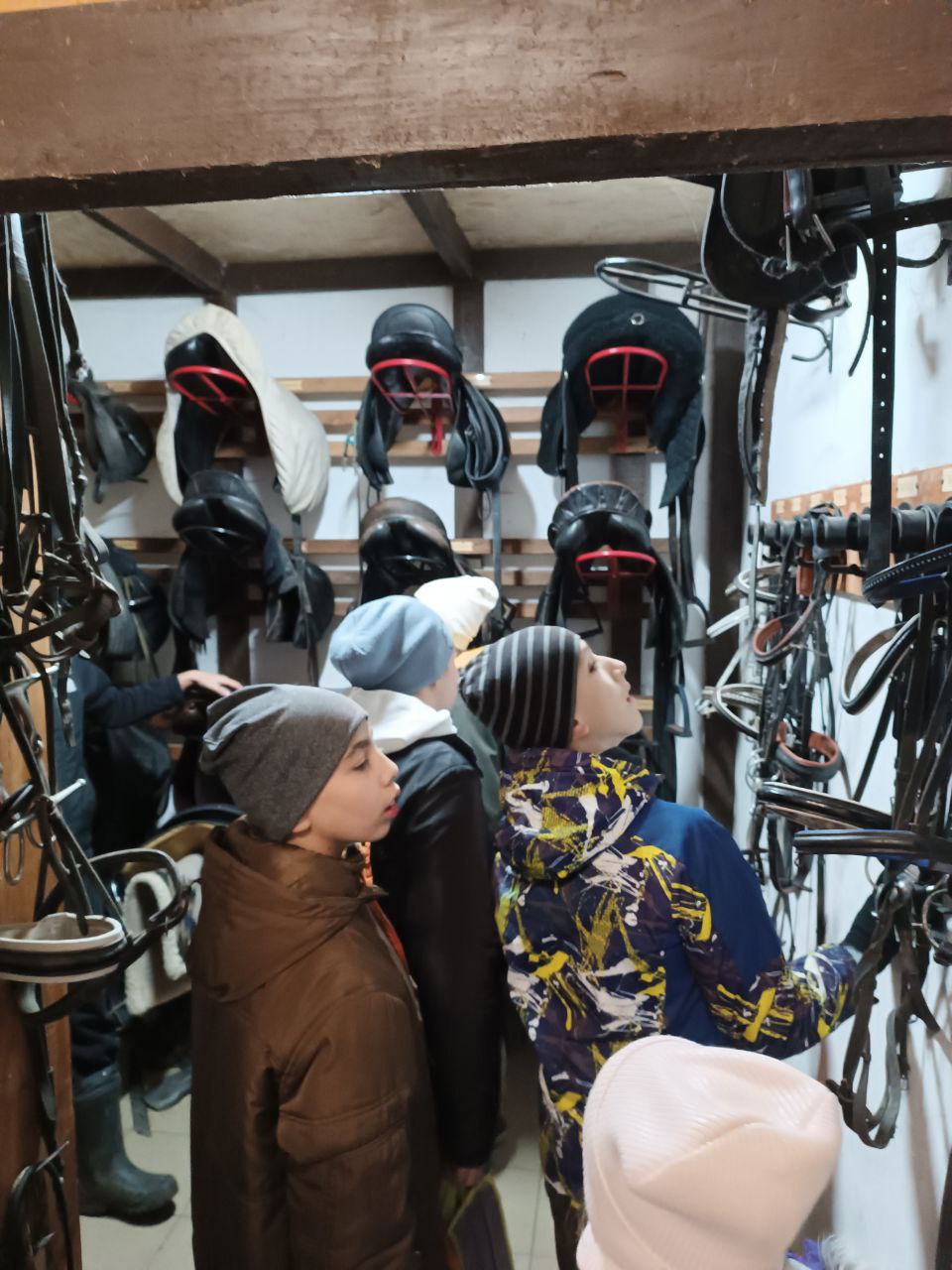 Ребята познакомились с устройством и работой конюшни, с условиями и правилами содержания и кормления лошадей, особенностями их тренинга.