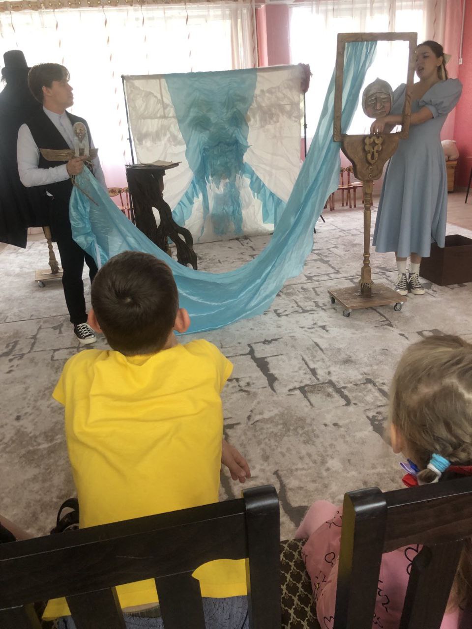 Дети с удовольствием, с горящими от счастья глазами, внимательно слушали, смотрели спектакль. Красочные и нарядные актеры, окунули нас в мир сказки, своими нежными и добрыми голоса . Представление доставило огромное удовольствие всем ребятам.