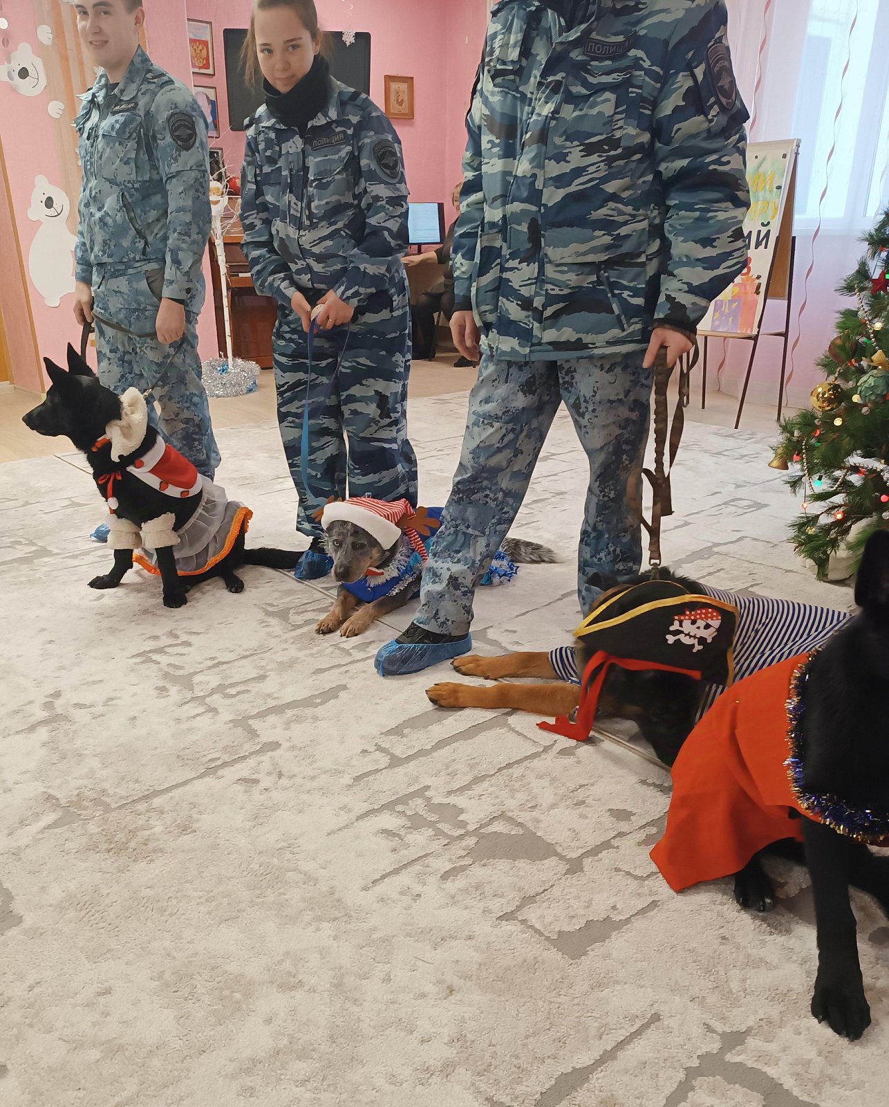 В этот раз, вместо эльфов, которые обычно помогают Деду Морозу прибыли служебные собаки – настоящие звезды этого события! Эти пушистые, озорные и дружелюбные четвероногие помощники смогли покорить сердца наших детей и подарить незабываемые эмоции.