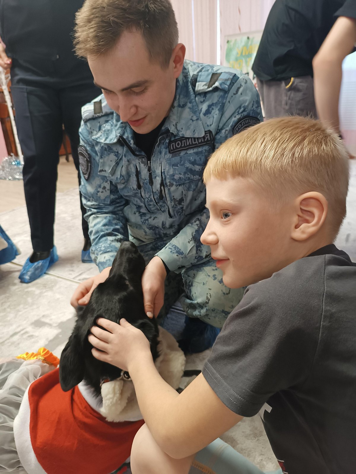 В этот раз, вместо эльфов, которые обычно помогают Деду Морозу прибыли служебные собаки – настоящие звезды этого события! Эти пушистые, озорные и дружелюбные четвероногие помощники смогли покорить сердца наших детей и подарить незабываемые эмоции.