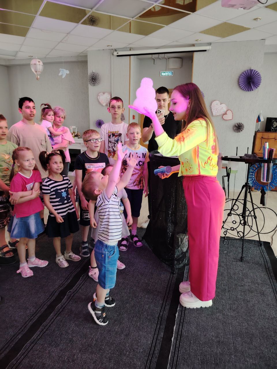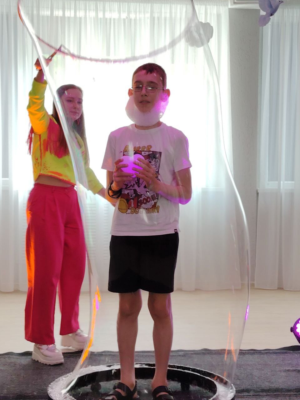 Мы были в восторге от захватывающих фокусов и, конечно же, от моря мыльных пузырей! Это было настоящее волшебство! Дети с удовольствием ловили их, смеялись и просто наслаждались этим волшебным моментом!