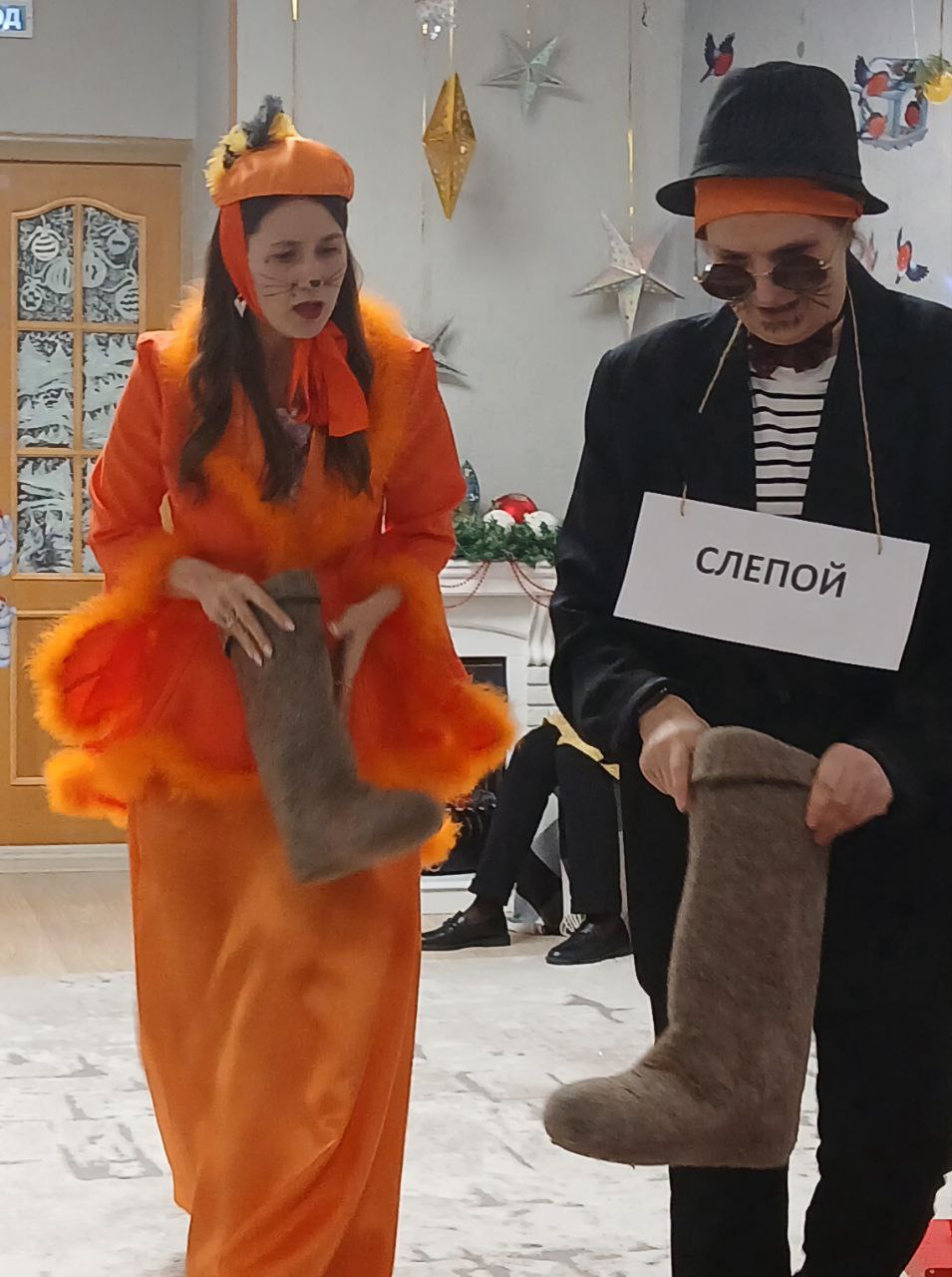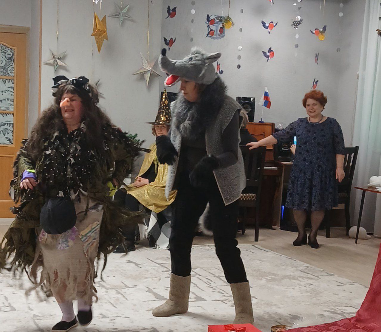 Наши воспитатели и специалисты, участвующие в новогоднем празднике, проявили себя хорошими артистами, показывая всё своё творческое мастерство, артистизм, задор и организаторские способности! Они перевоплотились в разных сказочных героев: в доброго Деда Мороза, в милую Снегурочку, в хитрую Бабу Ягу и серого Волка, лису Алису и кота Базилио и и волшебного сказочника.