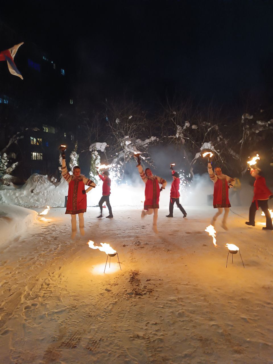 Огонь и русский дух — это просто невероятное сочетание!Фаер-шоу на тему русских народных мотивов — это настоящая магия: пламя пляшет под задорные мелодии балалаек и гармошки, артисты в ярких народных костюмах кружатся в искрящихся спиралях.