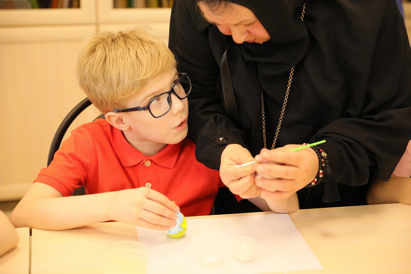 В комнате царила удивительно спокойная и добрая атмосфера. Матушки помогали каждому, кто затруднялся, подбадривали и хвалили за старание. Дети работали с большой ответственностью — ведь каждое яичко они создавали как маленький шедевр, который можно будет подарить близким или оставить себе на память.