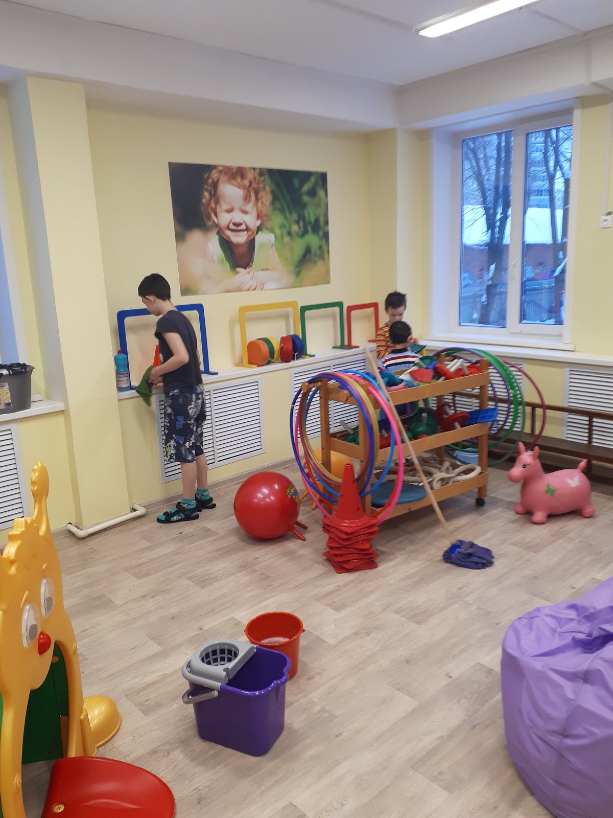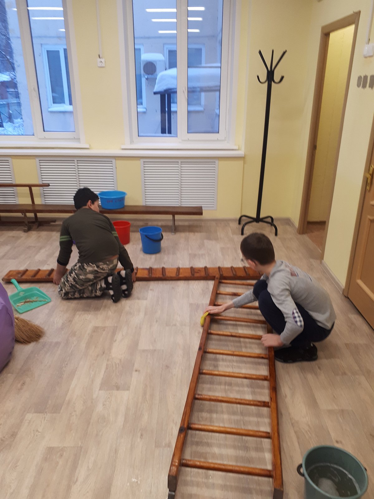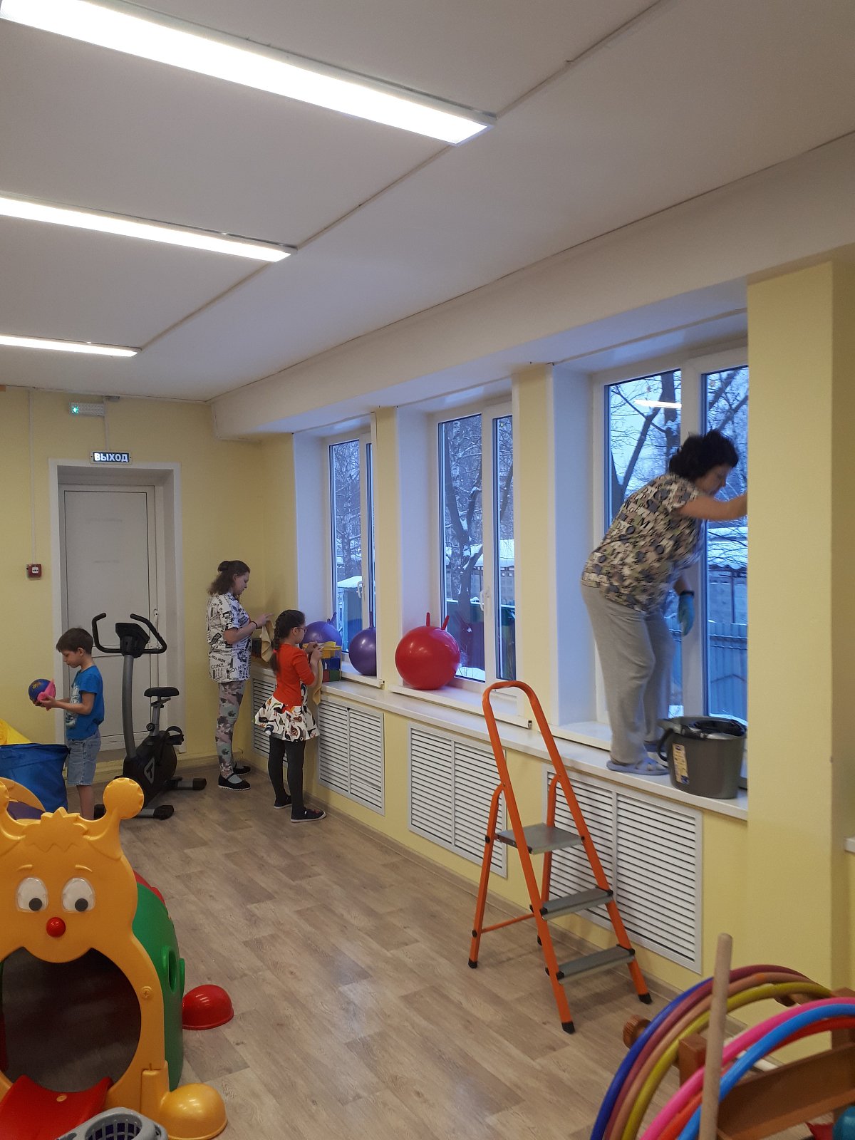 Дети с воодушевлением восприняли нашу идею. Каждый выбрал себе занятие по душе. Кто-то протирал спортивный инвентарь, кто-то мыл подоконники, а кто-то пол. Все остались довольны результатом своего труда. А это ценится вдвойне, когда сделал это самостоятельно!