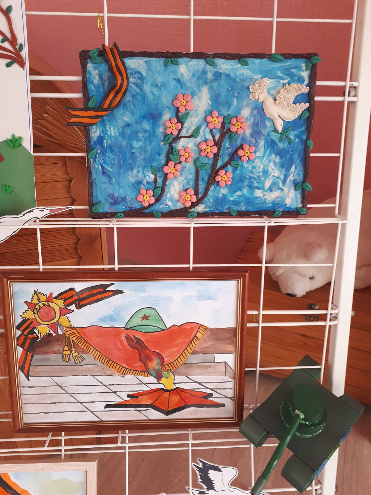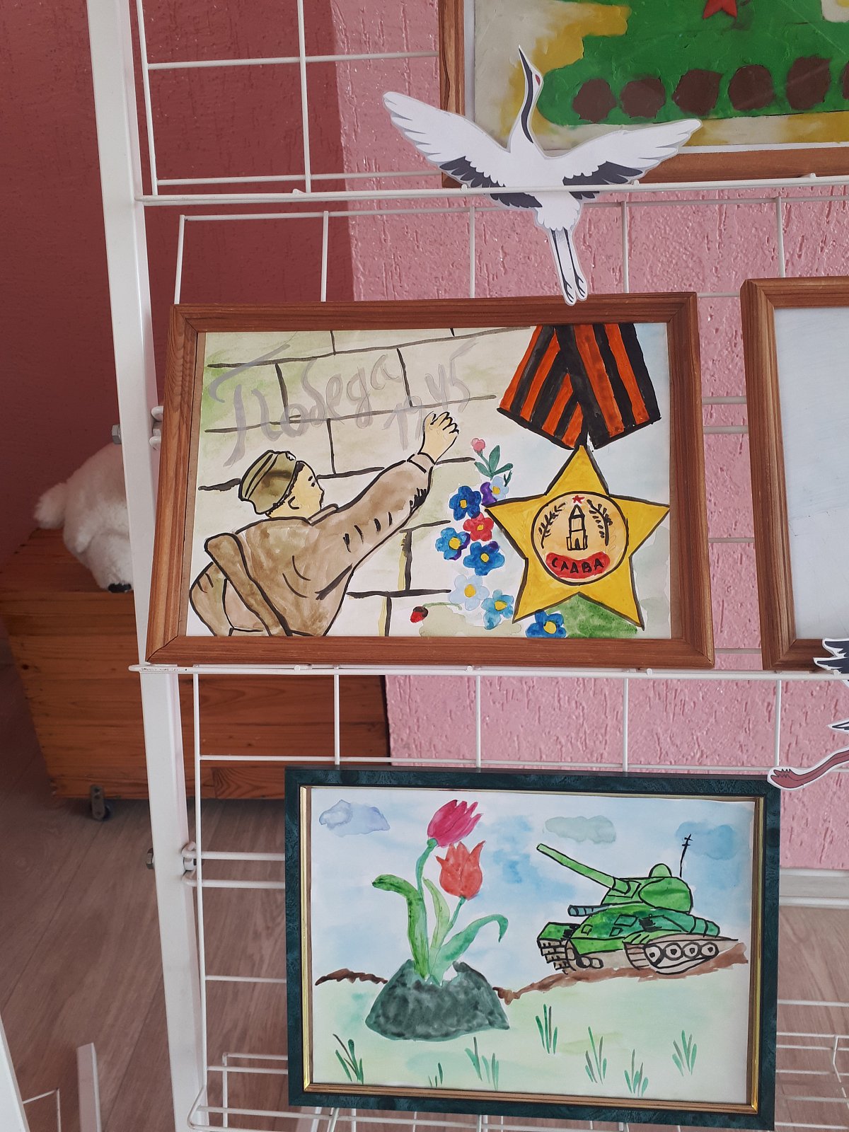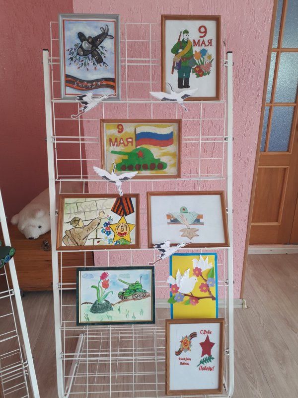 В преддверии Дня Победы у нас была организована тематическая выставка рисунков. Детские рисунки о войне – это продолжение памяти о наших дедах, это благодарность за нашу жизнь. Своими рисунками они благодарят тех солдат, которые, не щадя себя, шли к победе.