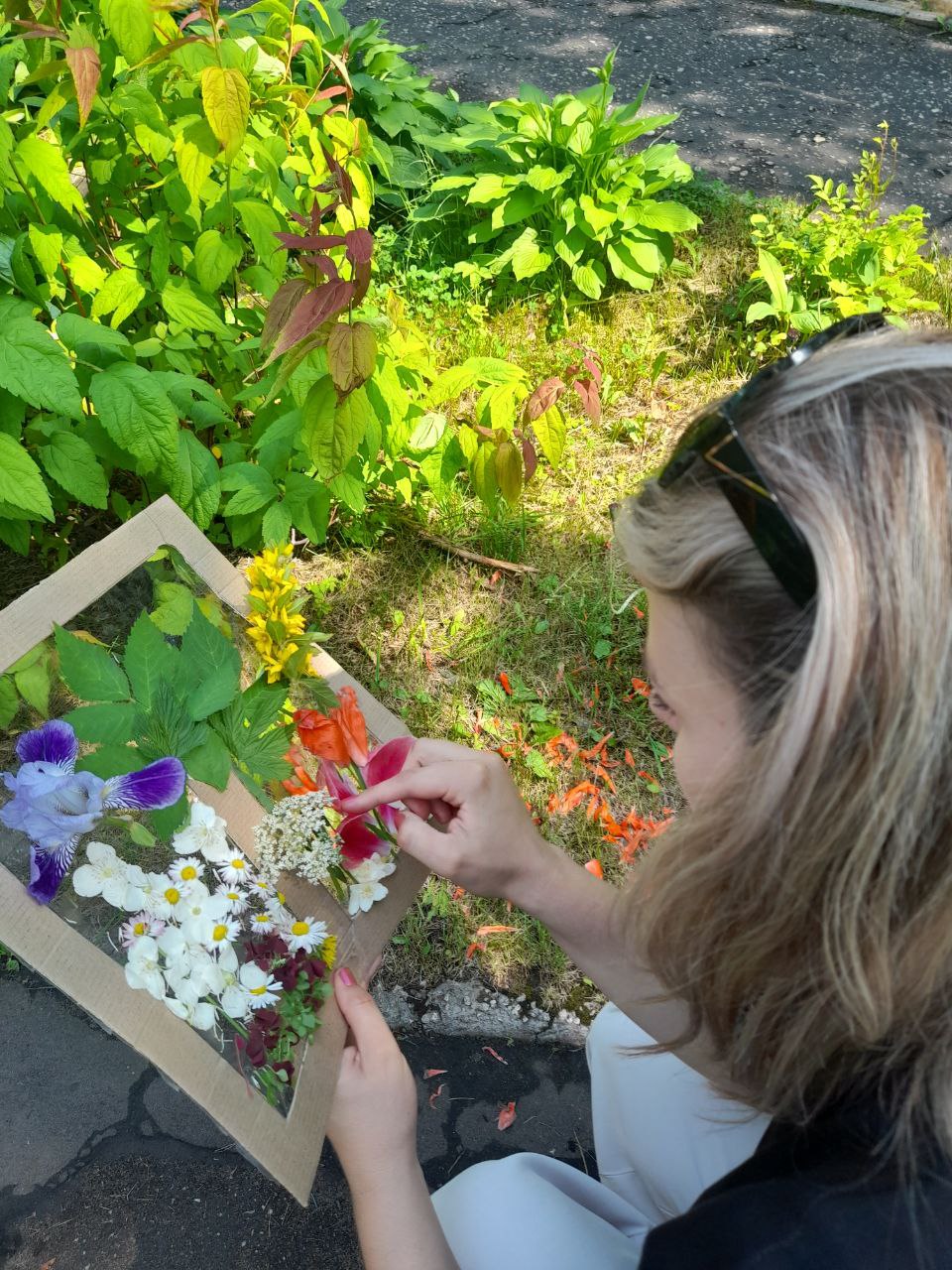 А чтобы надолго запомнить это лето наши малышки решили сделать мини-гербарии из цветов, травки, листьев и помесить этот «кусочек лета» в нарисованную на картоне картину.