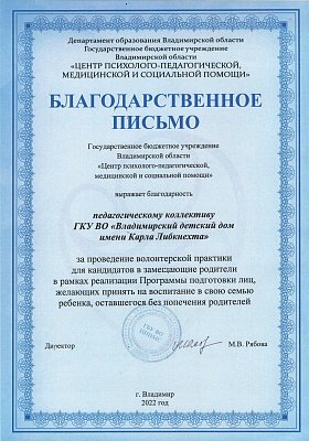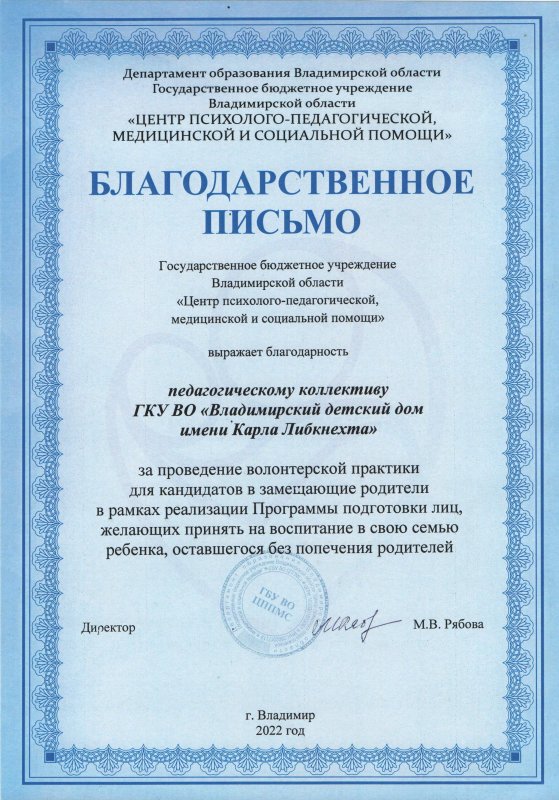 БЛАГОДАРСТВЕННОЕ ПИСЬМО.